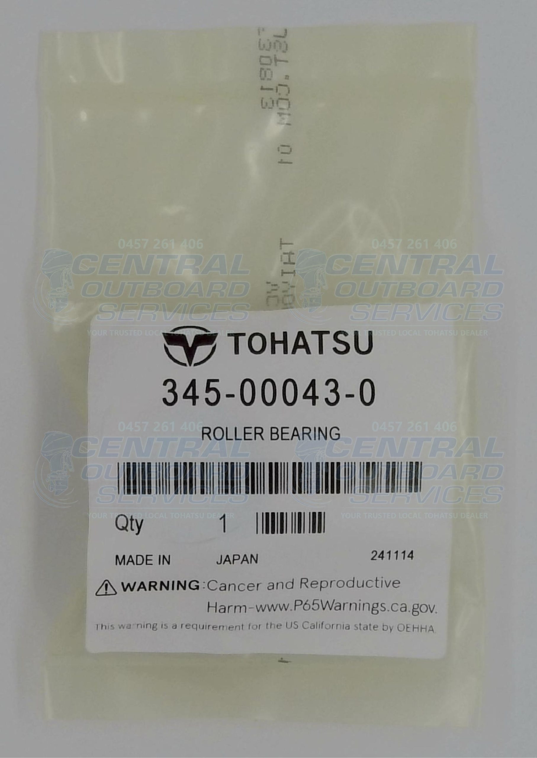 345-00043-0 Roller Bearing from Tohatsu, engineered to support rotational loads and reduce friction between moving parts in your outboard engine assembly. This OEM roller bearing helps maintain smooth motion and precise alignment in gear, shaft or linkage components, contributing to reliable performance and extended component life. Manufactured to factory specifications for correct fit and dependable operation in marine environments.