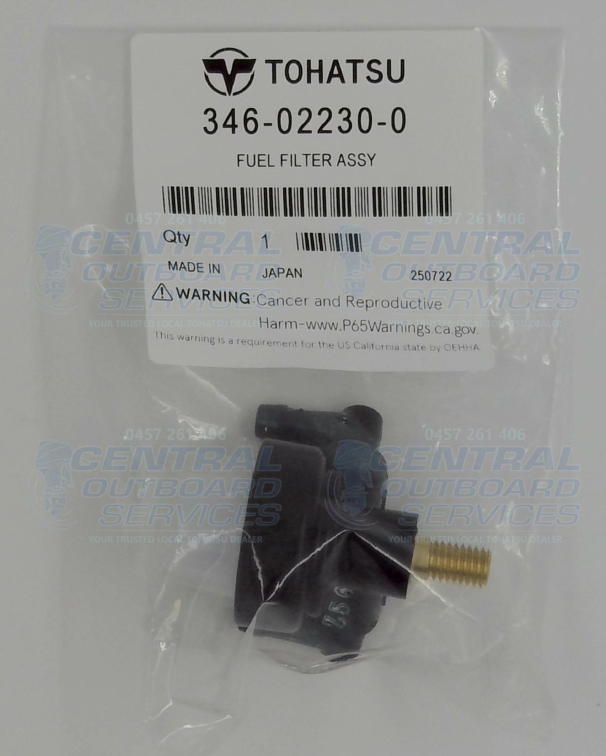 346-02230-0 Fuel Filter Assembly from Tohatsu, designed to keep your outboard engine’s fuel system clean and free of contaminants. This OEM fuel filter assembly traps dirt, rust and debris before they can enter the carburetor or fuel injectors, helping ensure smooth engine performance, reliable starts and reduced wear. Built to factory specifications for proper fit and dependable marine service life, it’s an essential replacement part for routine maintenance or when fuel delivery issues occur.