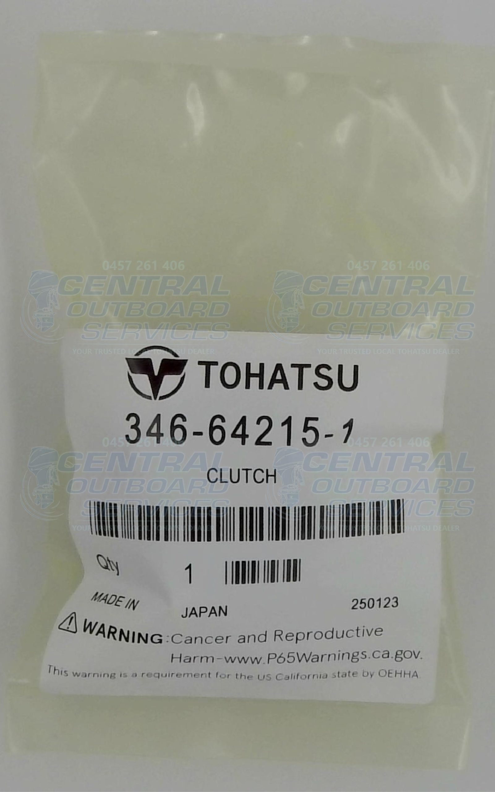 Commonly used on various Tohatsu 25HP and 30HP 2-stroke and 4-stroke outboards, including models in the M, NS, and NSF series using clutch part number 346-64215-1 / 346642151. Replacing a worn clutch helps prevent gear slipping, grinding noise, and loss of drive.