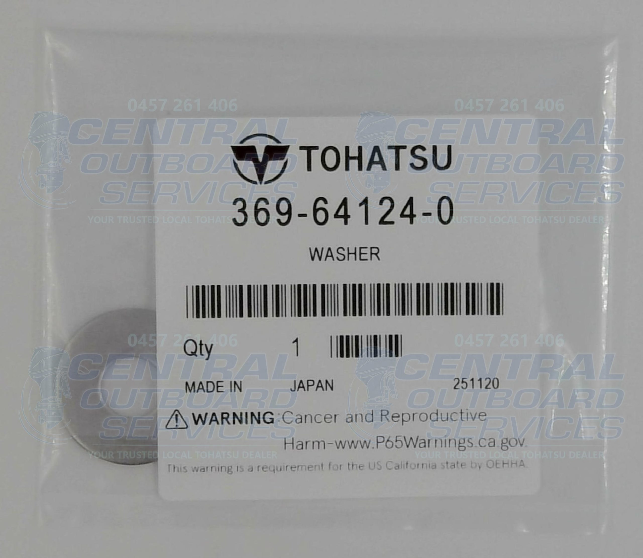369-64124-0 Washer from Tohatsu, designed to provide reliable spacing and secure load distribution in your outboard engine assemblies. This OEM flat washer helps ensure proper clamping force and prevents fastener looseness or surface damage under vibration and load. Made to factory specifications for correct fitment and long-lasting performance in marine environments, it’s ideal for use with bolts, nuts and mounting hardware during routine maintenance or repairs.