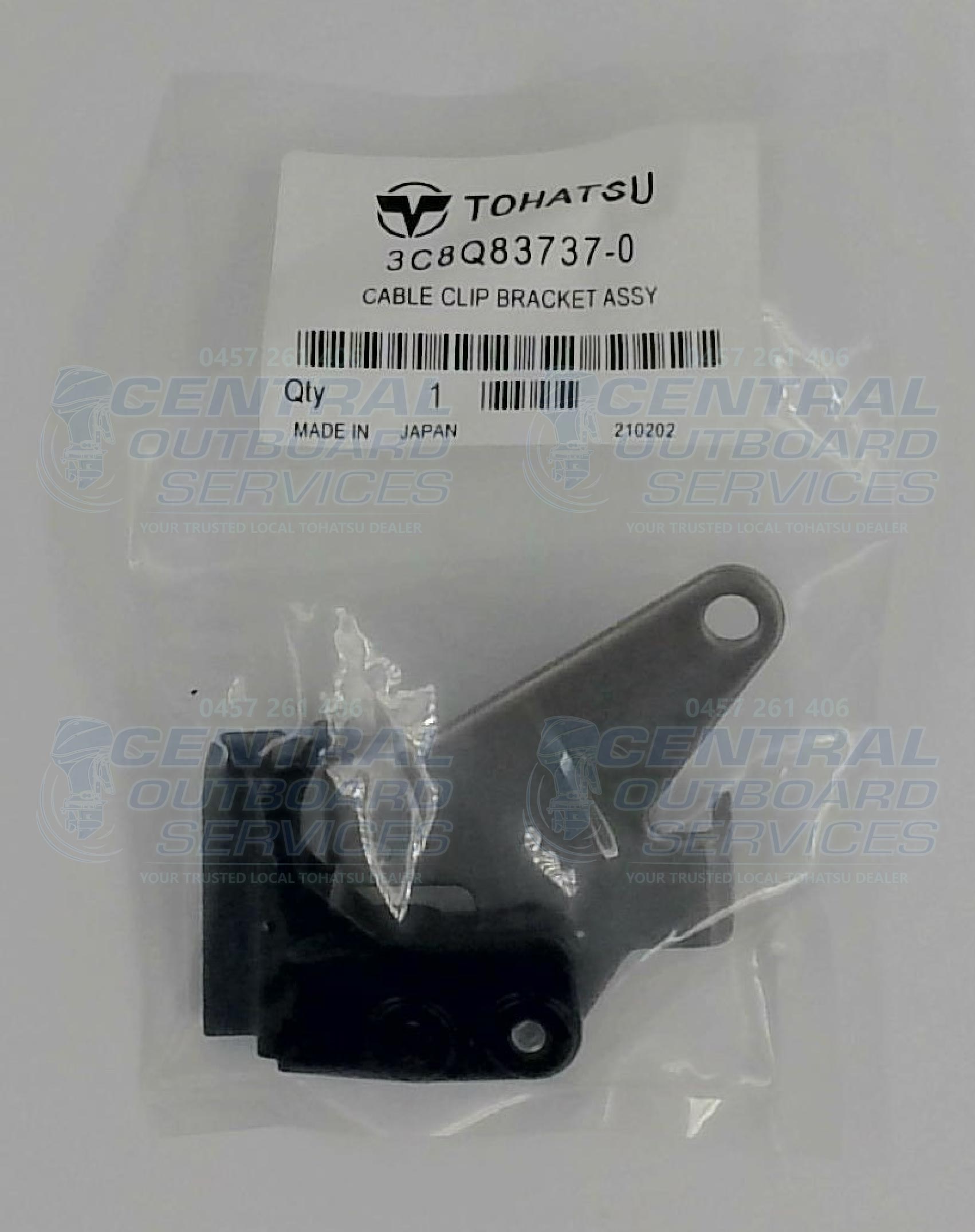 The 3C8Q83737-0 Cable Clip Bracket Assembly (also listed as 3C8Q837370) is a genuine OEM Tohatsu bracket used to secure and route cables in the lower cowl (bottom cowl) of select 40 HP and 50 HP Tohatsu