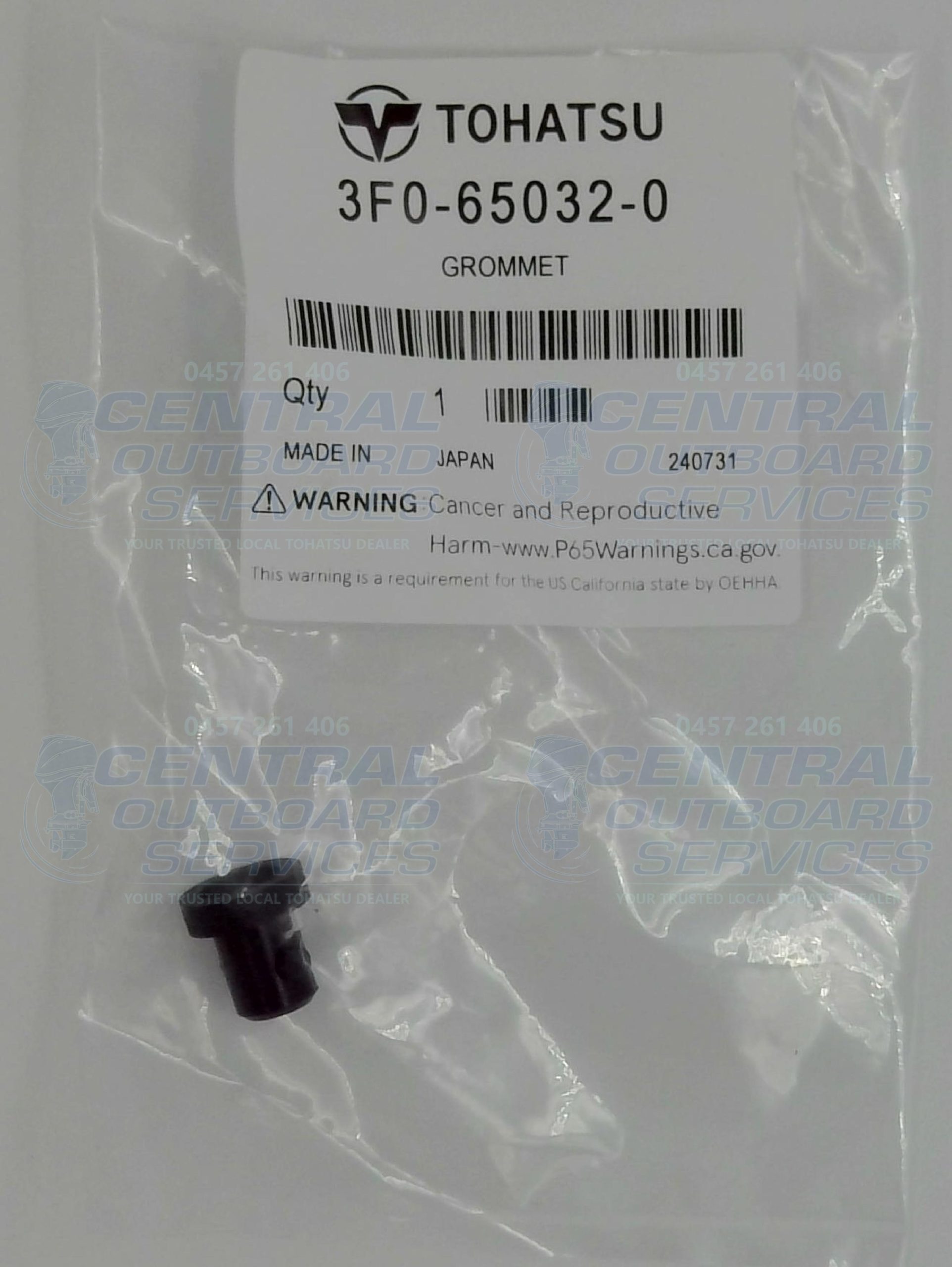 3F0-65032-0 Grommet from Tohatsu — a durable OEM rubber grommet designed to protect cables, hoses, or wiring where they pass through bulkheads, panels or engine components on your outboard motor. This factory-specified grommet helps reduce wear and chafing from vibration and movement, prevents water or contaminants from entering sensitive areas, and ensures a clean, secure passage for lines. Manufactured to Tohatsu’s exact specifications for proper fitment and long-lasting marine performance.