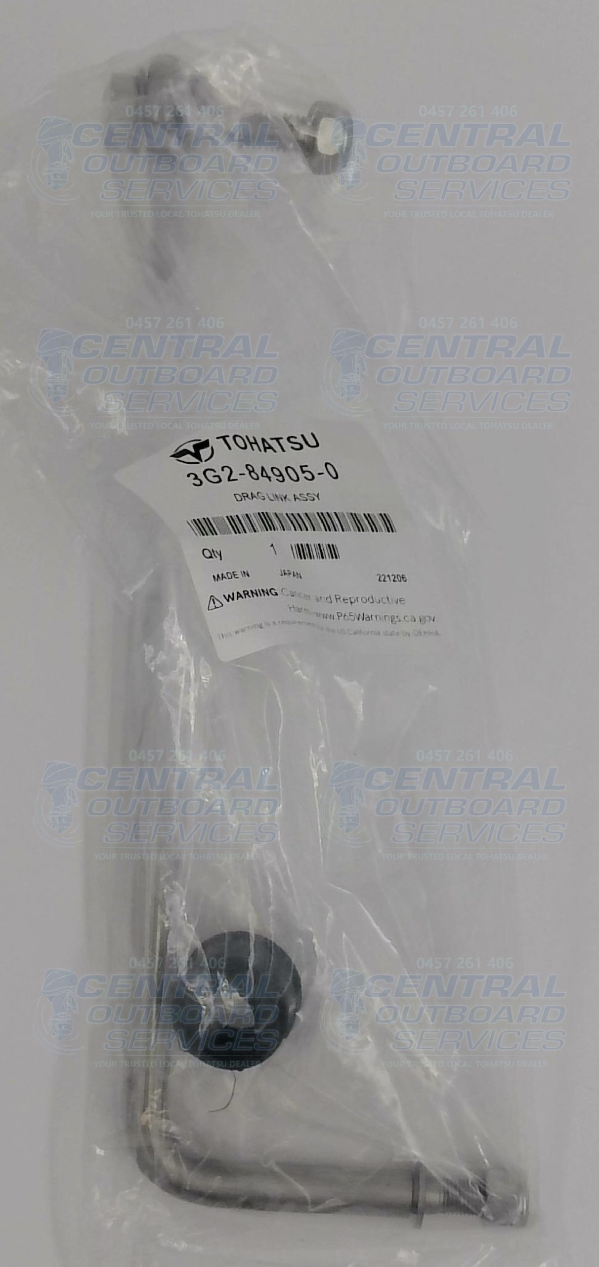 Genuine 3G2-84905-0 Drag Link Assembly from Tohatsu, designed to provide precise steering linkage action on compatible outboard motors. This OEM assembly connects and transfers movement from the steering arm to the engine or lower unit, ensuring smooth, responsive control on the water. Built to factory specifications for correct fit, strength and long-lasting performance even in harsh marine conditions.