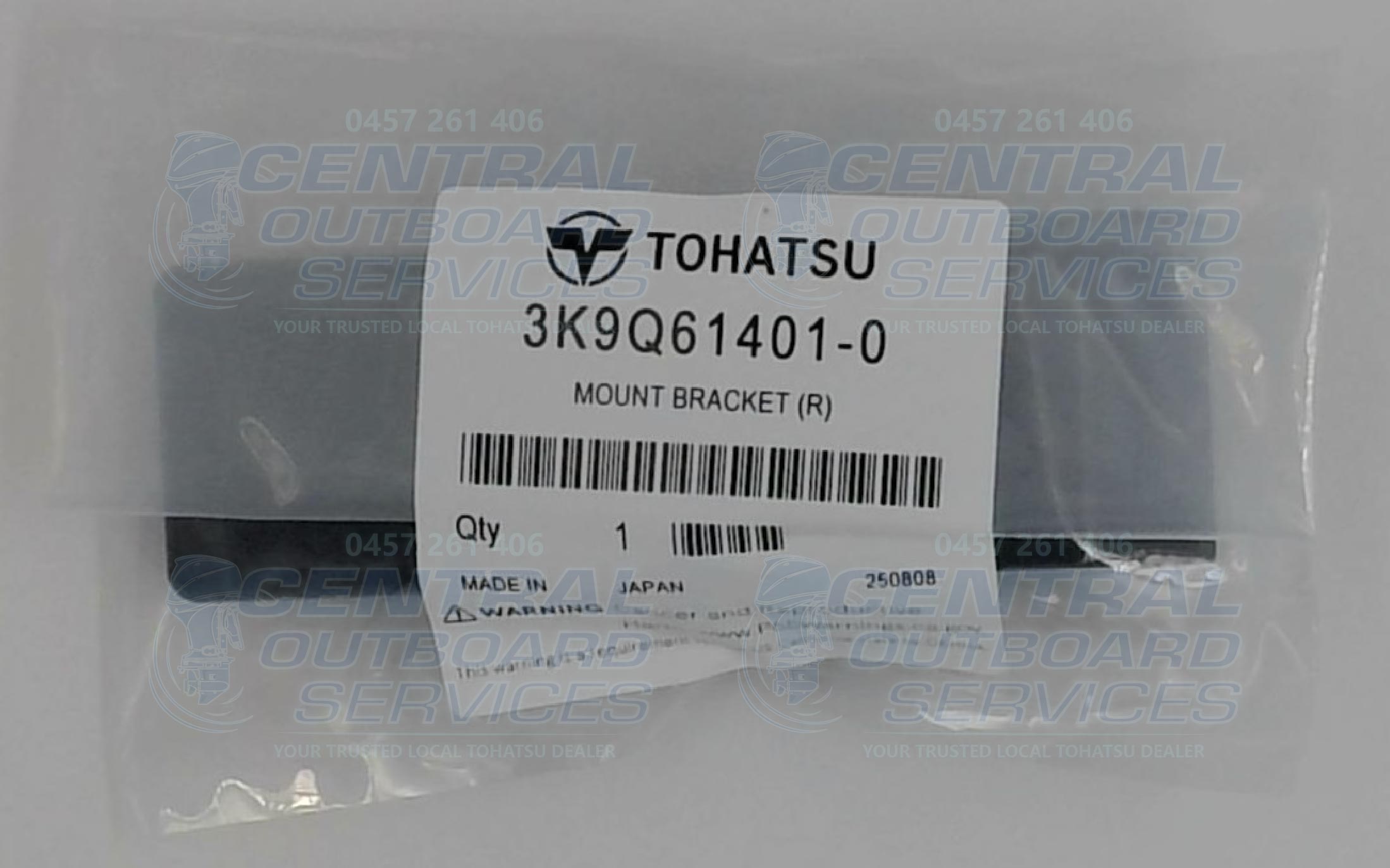 The 3K9Q61401-0 Mount Bracket (R) (Right side) is a genuine Tohatsu OEM bracket used in outboard motor mounting assemblies. It provides structural support and location for the engine to the transom or mounting frame.