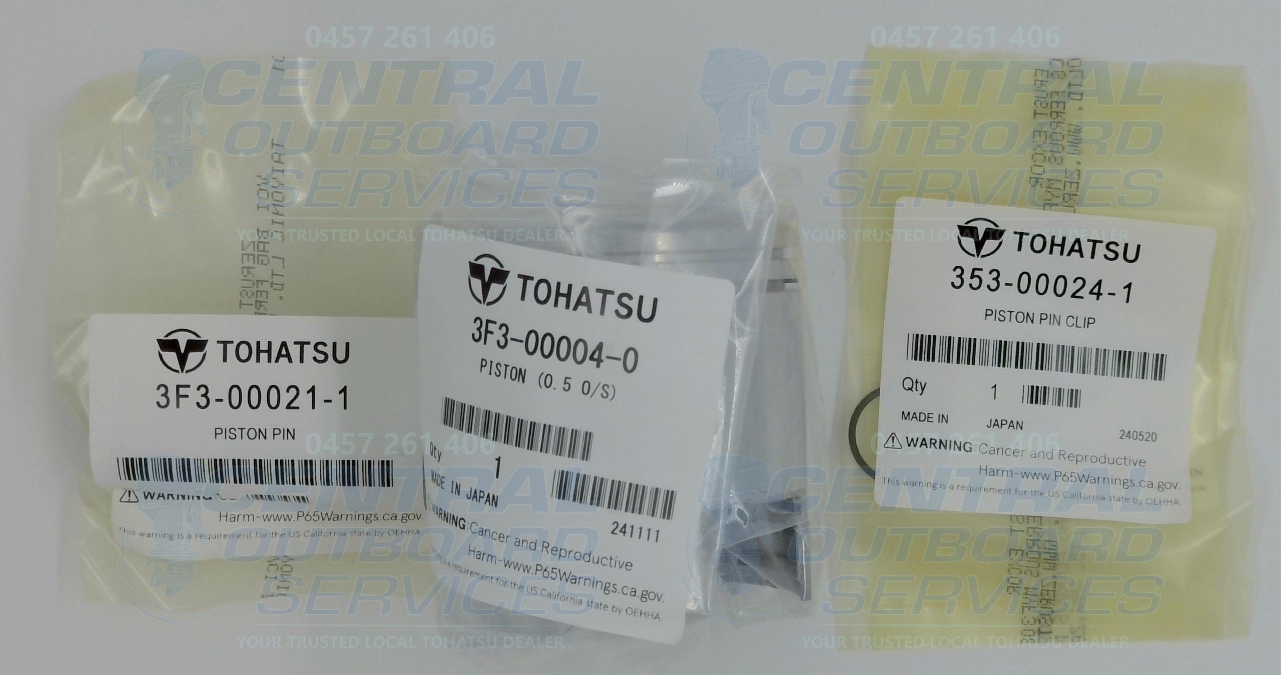 3N5-87131-0 Piston Repair Kit (0.5 O/S) from Tohatsu — a complete OEM kit designed for rebuilding an oversize piston assembly in compatible outboard engines. This repair kit includes the key components needed when your engine has been bored 0.5 mm over standard — such as the correctly sized piston (0.5 OS), piston pin, piston pin clips, and any associated seals or rings — all manufactured to Tohatsu’s strict factory specifications.