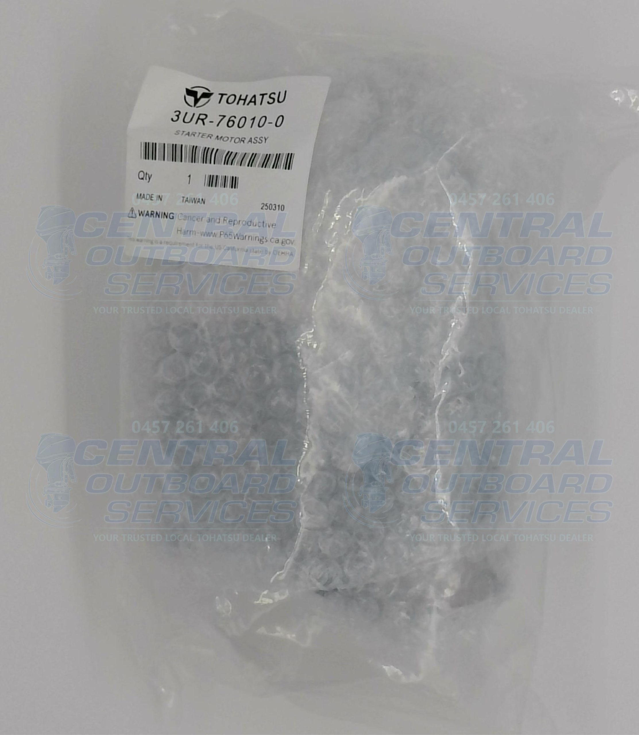 3UR-76010-0 Starter Motor Assembly from Tohatsu, designed to deliver reliable engine starting power for compatible outboard motors. This OEM starter motor provides strong, consistent cranking performance to help your engine fire up quickly and dependably. Built to factory specifications with quality components, it offers long-lasting durability in marine environments and correct fitment without modification.