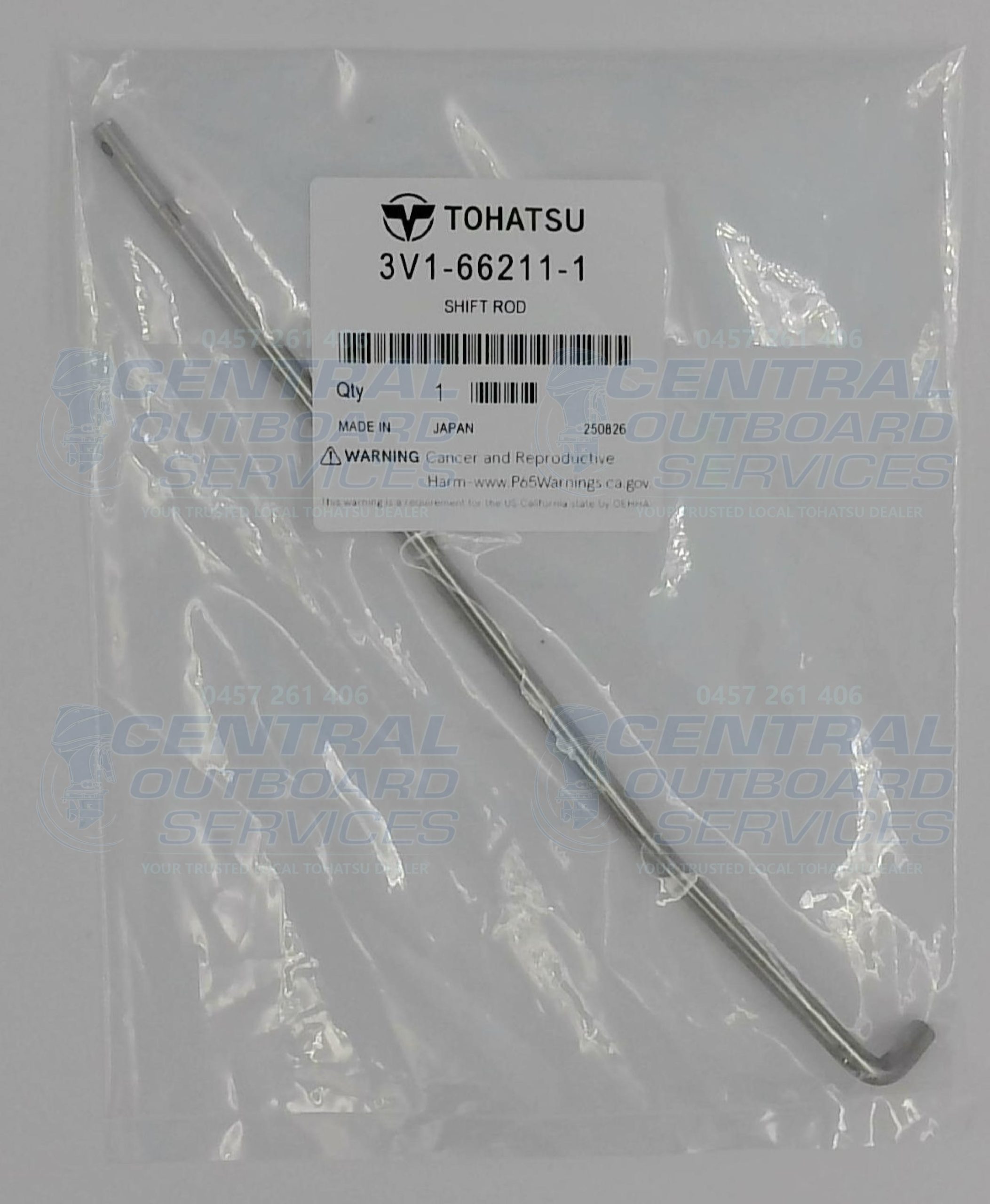 The 3V1-66211-1 is an OEM Tohatsu shift rod (gear shift linkage rod) used to connect the shift lever mechanism to the gearbox, enabling forward-neutral-reverse gear shifting.