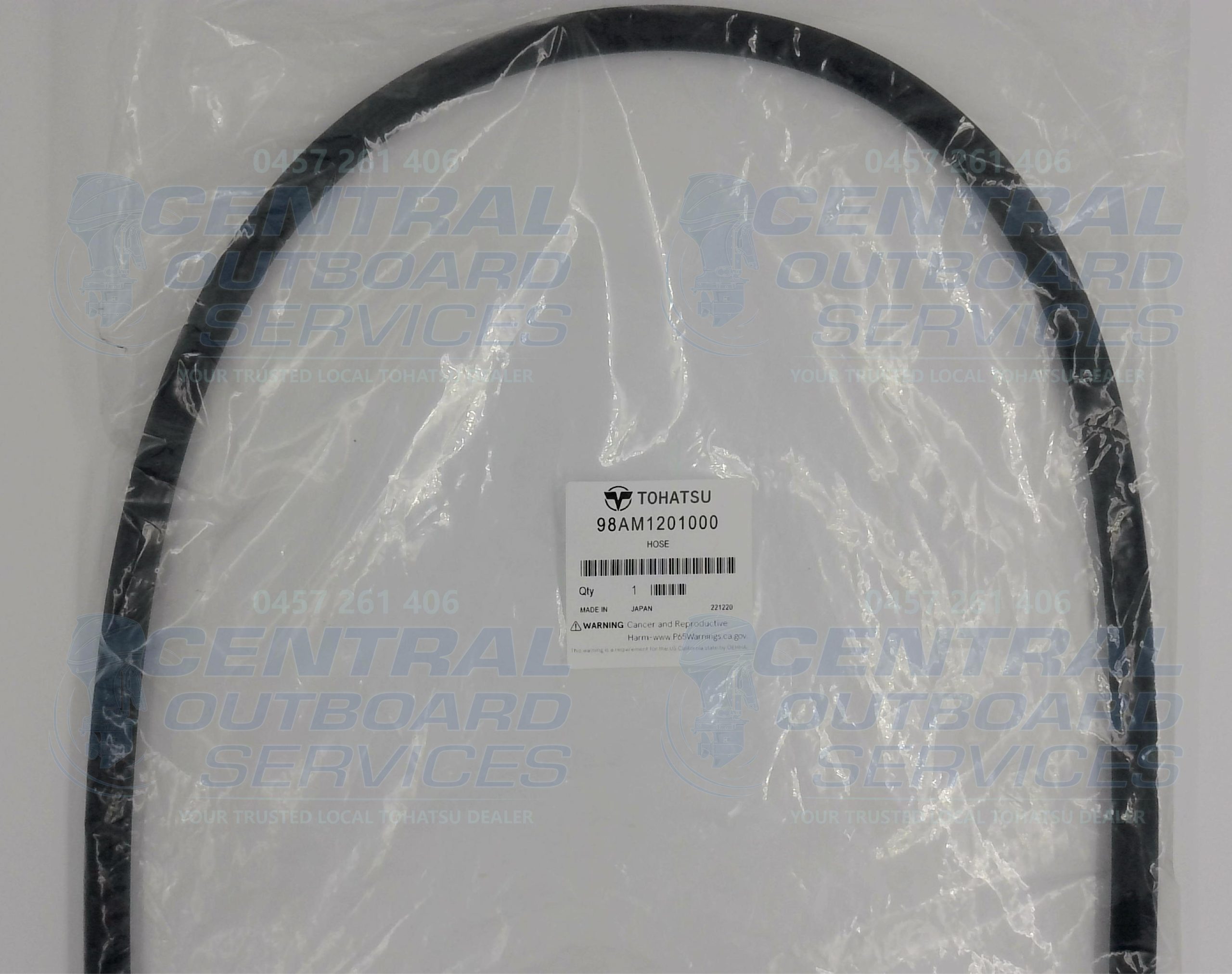 The 98AM1201000 rubber pipe is a genuine Tohatsu OEM hose (rubber pipe) used in various fuel or water routing applications in Tohatsu outboards.
